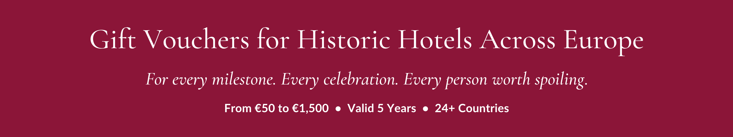 Give the magic of a European heritage hotel this Christmas. Redeemable across 24+ countries. From €50 to €1,500. Valid 5 years.